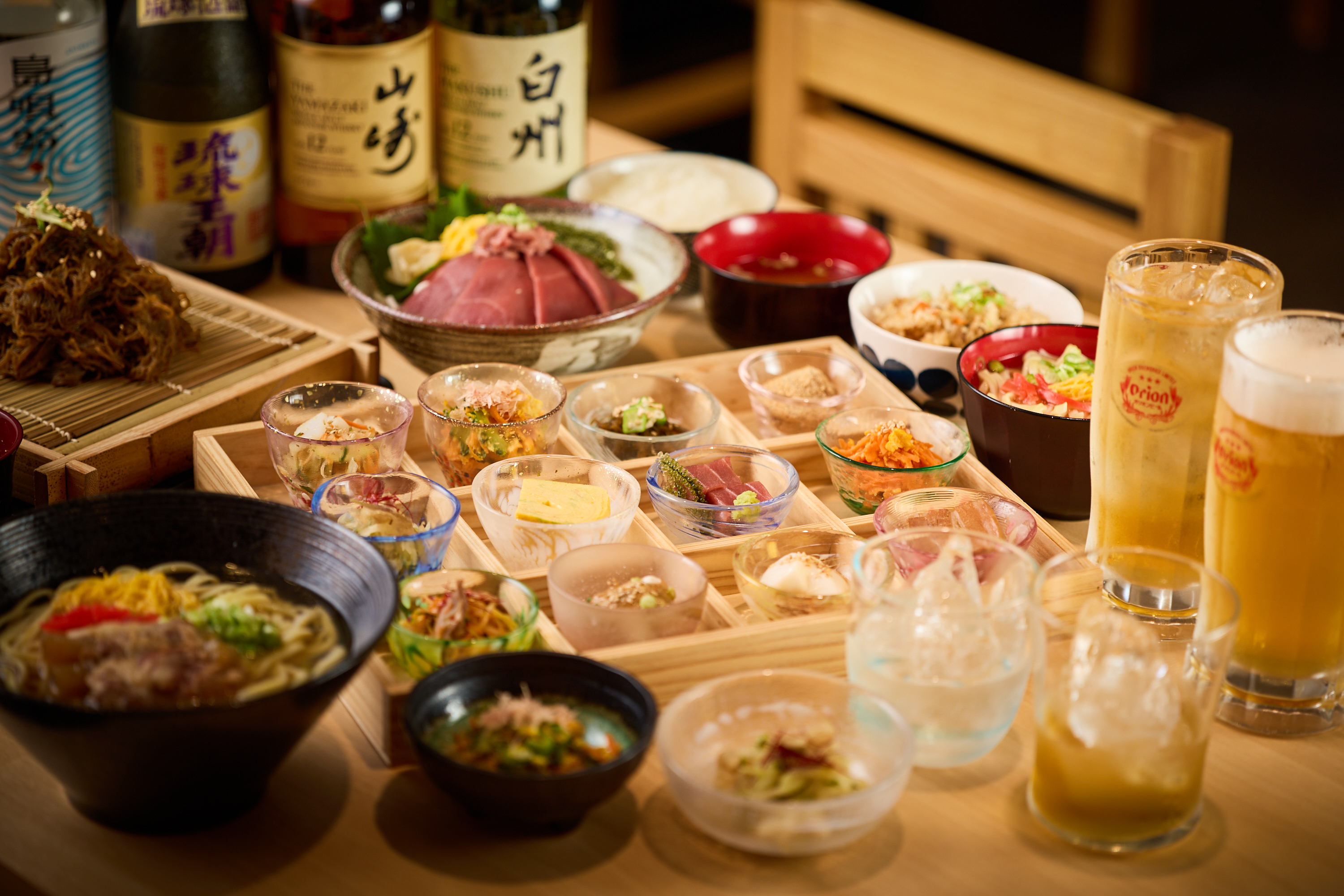 ゴーヤチャンプルー、じーまみー豆腐などをはじめとするベーシックな沖縄料理と、食べやすく細切りにし砂肝とピリ辛に和えした島らっきょうや、酢ではなく出汁で味付けしたもずくなどの創作料理など、贅沢に沖縄を堪能できます。