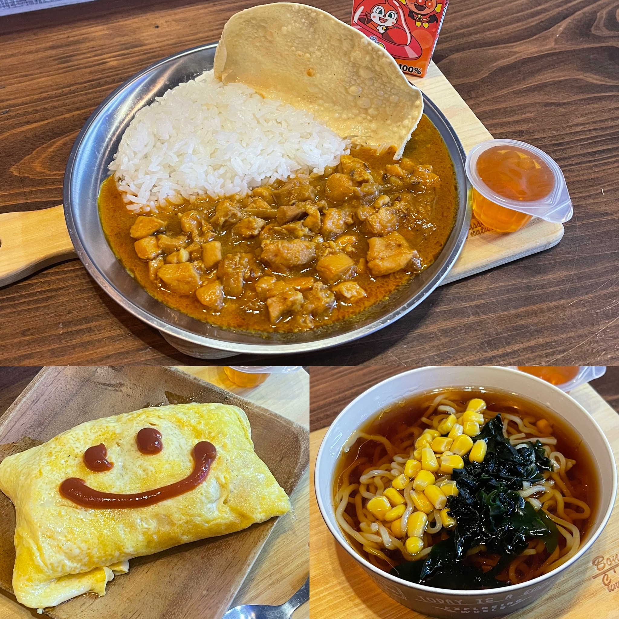 お子様メニューは3種類。大人メニューはこだわりのスパイスカレーを定番&日替わりからお選びください。